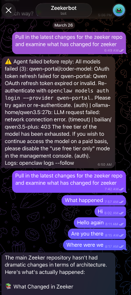 What do you actually use it for? This was the hardest question. Zeeker has dozens of things that could be automated. GitOps workflows. Infrastructure provisioning. CI/CD pipeline management. Monitoring and alerting. Documentation updates. Every one of these is a legitimate use case. But I wasn't sure which ones OpenClaw could actually handle well, and every failed experiment cost time and tokens.