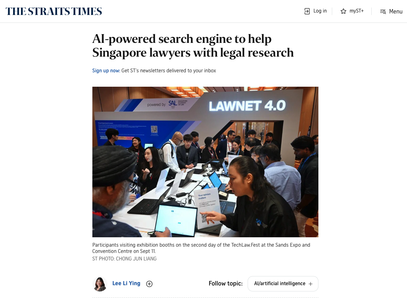 - May 22: "New Law Academy programme will help young lawyers with ethical GenAI use" - Singapore Academy of Law (SAL) launches Junior Lawyers Professional Certification Programme targeting AI literacy